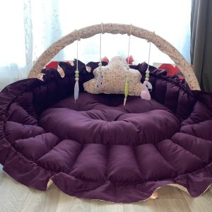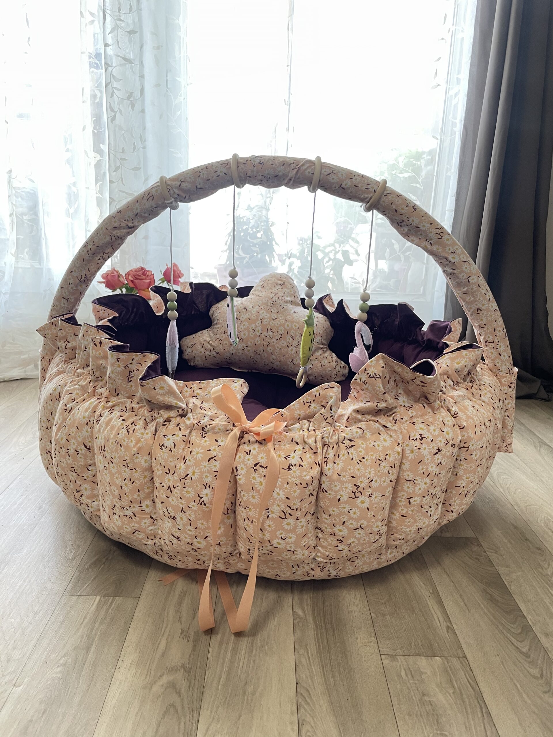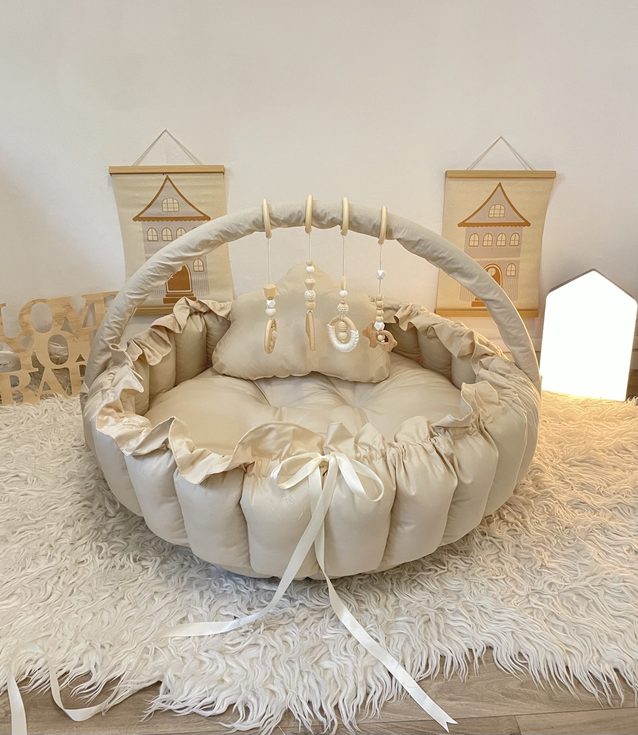 Le Jaju est un produit phare de Monidamour, conçu pour offrir confort et polyvalence aux tout-petits. Ce couffin moelleux se distingue par sa capacité à se transformer en tapis d’éveil réversible, faisant de lui un espace multifonctionnel idéal pour les nouveau-nés. Disponible en deux tailles – classique (120 cm ouvert) et XL (150 cm ouvert) – il est entièrement personnalisable avec un large choix de tissus et d’accessoires comme des arches en bois ou en feutre et des couvertures avec ou sans molleton.